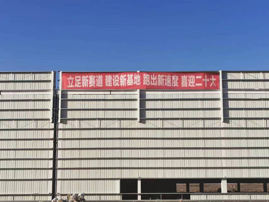 在內(nèi)蒙古自治區(qū)鄂爾多斯市伊金霍洛旗的上汽紅巖新能源重卡基地現(xiàn)場,“立足新賽道,建設(shè)新基地,跑出新速度,喜迎二十大”的橫幅分外醒目,工程施工井然有序,總裝車間正在進行墻面內(nèi)板安裝、地坪施工及幕墻施工......