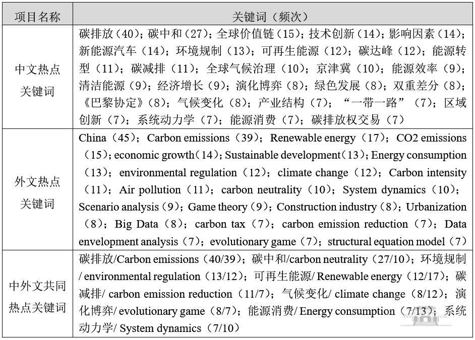 表5 碳中和國家社科基金成果熱點關鍵詞統(tǒng)計
