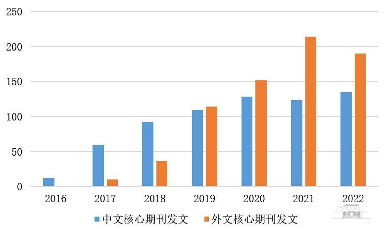 圖3 2016—2022碳中和相關的國家社科基金中外文核心期刊論文的年度分布