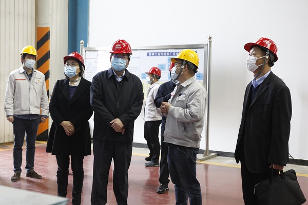 隨后,張?jiān)氯A陪同王增平一行參觀了公司生產(chǎn)區(qū)域。