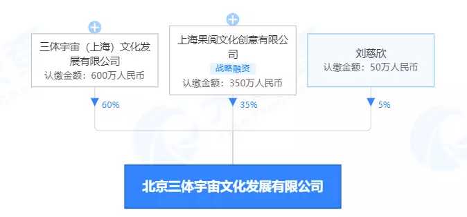 同年12月10日,三體宇宙文化發(fā)展公司成立,林奇持股65.69%,b站持股5%,劉慈欣持有其控股公司5%的股份: