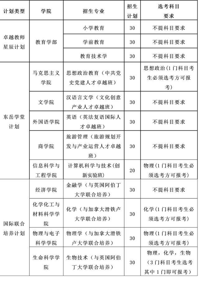 1,山師大2021綜合評價招生專業(yè)及計劃數(shù)