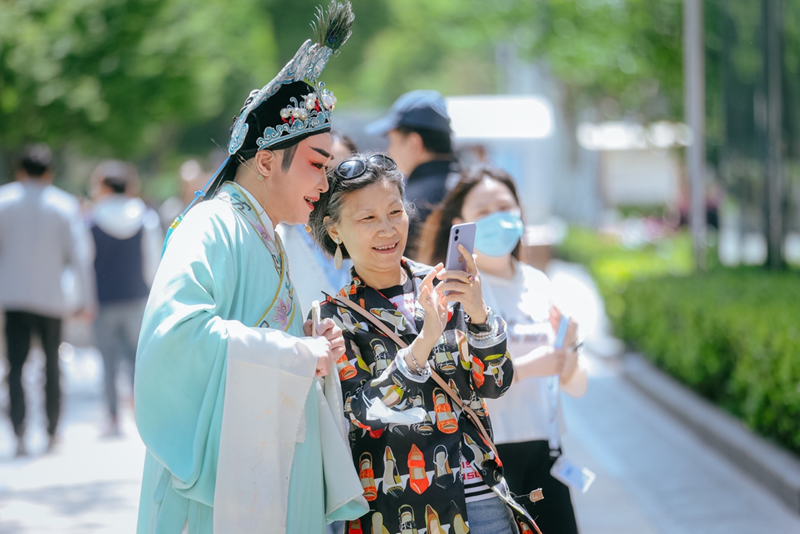 嵊州越劇演員在上海街頭與市民互動(dòng)。新華網(wǎng) 發(fā)(受訪者供圖)