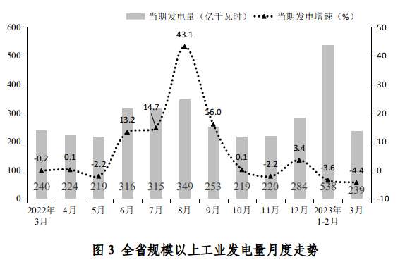 1-3月份,全省規(guī)模以上工業(yè)發(fā)電775.18億千瓦時,同比下降4.0%。