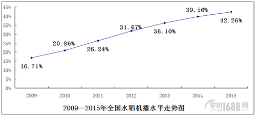 從機(jī)插水平看,2015年,我國(guó)小麥、玉米的機(jī)播水平分別為87.54%和86.62%,基本實(shí)現(xiàn)了機(jī)械化播種,而水稻機(jī)插水平僅為42.26%。不難看出,要實(shí)現(xiàn)水稻種植機(jī)械化,尚有很長(zhǎng)的路要走。由此決定了提高水稻機(jī)播水平是實(shí)現(xiàn)水稻種植全程機(jī)械化最重要的環(huán)節(jié)。