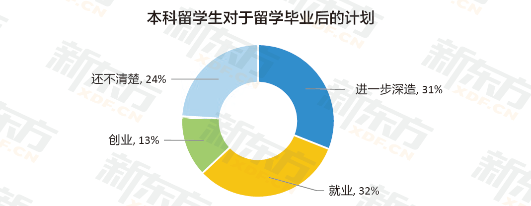 本科留學生畢業(yè)后直接就業(yè)與繼續(xù)深造并重,碩博留學生多選擇就業(yè)