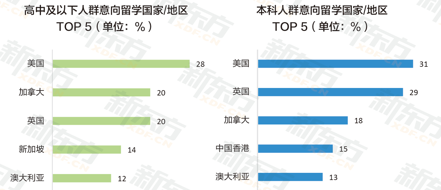 美、英仍是主流意向國家,加拿大更受高中及以下人群青睞