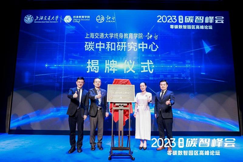李昕榮、胡潔、李澤、馬洪達(dá)共同為“上海交通大學(xué)終身教育學(xué)院-計然碳中和研究中心”揭牌。