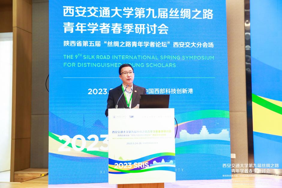 王樹國(guó)向所有參加本次研討會(huì)的嘉賓和青年才俊表示熱烈歡迎,他介紹了西安交大的辦學(xué)理念和中國(guó)西部科技創(chuàng)新港的建設(shè)情況,他表示:5月18日至19日,中國(guó)-中亞峰會(huì)在西安召開,這個(gè)時(shí)代是個(gè)新賽道頻出的時(shí)代,大學(xué)要著眼于第四次工業(yè)革命背景下社會(huì)發(fā)展變革和大學(xué)自身發(fā)展。中國(guó)西部科技創(chuàng)新港的建設(shè)發(fā)展旨在打造我國(guó)重要的科研和文教中心,同時(shí)緊密圍繞西咸一體化發(fā)展趨勢(shì),希望越來越多的科技人才聚集于創(chuàng)新港,用智慧和力量不斷創(chuàng)新,支撐、引領(lǐng)社會(huì)發(fā)展?!跋M嗄陮W(xué)者能勇于開辟新賽道,并且能在自己最適合的平臺(tái)上堅(jiān)定不移地走下去,在新賽道上走到世界前列,為國(guó)家發(fā)展、為人類文明進(jìn)步作出更大貢獻(xiàn),展示你們這一代人最閃光的一面!”
