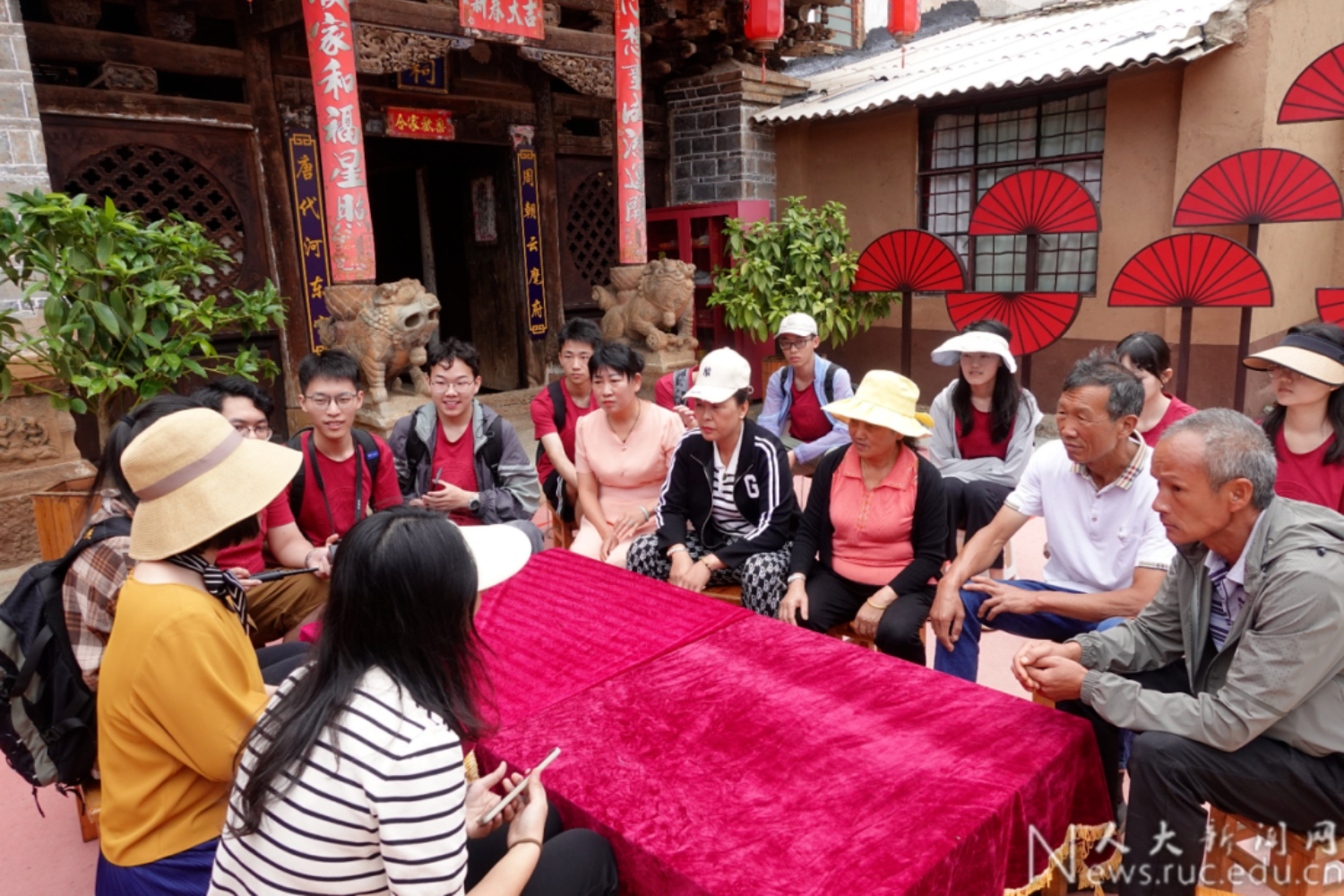 搬起小板凳,圍著小桌子,同學(xué)們在古建筑前、綠樹芳草邊與當(dāng)?shù)卮迕翊磉M(jìn)行了面對面交流,討論問題涵蓋景觀維護(hù)、資金融通和村民自主性等廣泛內(nèi)容——對于長期學(xué)習(xí)宏觀理論的同學(xué)們,村民們實在、接地氣的語言和經(jīng)驗是田野間最好的教科書。