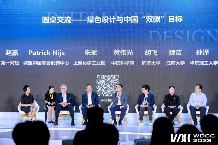 本次論壇還進行了兩場精彩的圓桌對話。第一場圓桌對話以“綠色設計與中國‘雙碳’目標”為主題。歐盟中國聯(lián)合創(chuàng)新中心聯(lián)合發(fā)起人patrick nijs、上?;瘜W工業(yè)區(qū)副主任朱斌、中國科學院上海高等研究院原副院長黃偉光、同濟大學創(chuàng)意設計學院院長胡飛等嘉賓就“中國雙碳目標下的挑戰(zhàn)與機遇,關鍵領域,以及國際合作的前景”“雙碳導向下,高校在人才培養(yǎng)和前沿領域的布局和規(guī)劃”等問題展開了充分討論。