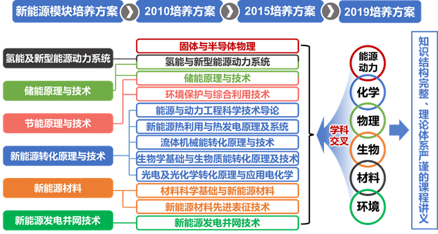 第一、在無國內(nèi)外先例可循的情況下,創(chuàng)建“理論與實踐并重、科技創(chuàng)新和人文素養(yǎng)并舉”的新能源科學(xué)與工程專業(yè)及專業(yè)培養(yǎng)方案,融合生化材物等學(xué)科基礎(chǔ)理論與前沿科技,重構(gòu)學(xué)科深度交叉的專業(yè)課程體系,注重新能源前沿知識更新,形成知識結(jié)構(gòu)完整、理論體系嚴謹?shù)恼n程講義和經(jīng)典教材,為新能源與能源利用新技術(shù)高素質(zhì)科技人才培養(yǎng)培土。