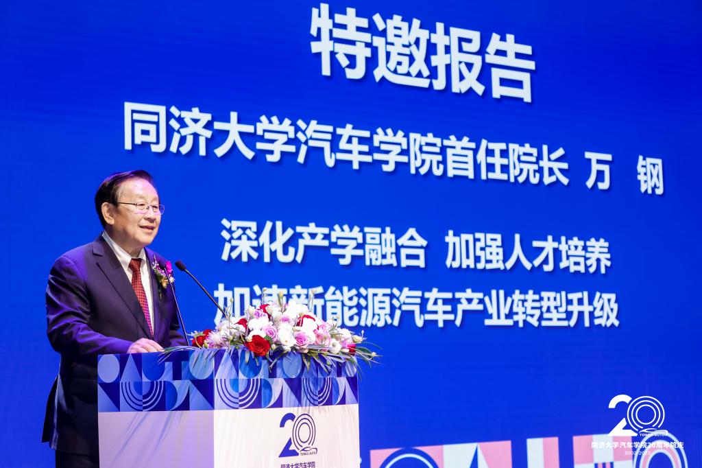 萬鋼作了題為《深化產(chǎn)學融合,加強人才培養(yǎng),加速新能源汽車產(chǎn)業(yè)轉型升級》的特邀報告。他從同濟自主研發(fā)新能源汽車說起,回顧了中國新能源汽車的發(fā)展歷程,分析了在全球新能源汽車市場總體增長迅速,新能源汽車進入電動化、智能化、低碳化高質(zhì)量發(fā)展新階段的背景下,如何推動我國新能源汽車科技創(chuàng)新。他指出,一要加快氫能和燃料電池汽車的研發(fā)和產(chǎn)業(yè)化;二要加快基礎設施建設;三要創(chuàng)新政策措施,加速新能源汽車全面市場化;四要加強開放合作,全球共創(chuàng)新能源汽車低碳發(fā)展的新生態(tài)。由此,他對新時代培育創(chuàng)新人才提出了“學科交叉、產(chǎn)教融合、開放平臺、國際合作”四點要求。萬鋼指出,同濟大學汽車學院要不斷凝聚共識,持續(xù)加強科技創(chuàng)新,深化以對歐、對德為特色的國際合作與交流,推動學科創(chuàng)新發(fā)展;要持續(xù)加強學科交叉,優(yōu)化產(chǎn)教融合,建設新型車輛工程學科和育人體系;要統(tǒng)籌推進新能源汽車、智能網(wǎng)聯(lián)交通等創(chuàng)新平臺,加快動力電池體系、新型底盤架構、智能駕駛系統(tǒng)、氫能和燃料電池等關鍵技術突破,為推動我國乃至全球汽車產(chǎn)業(yè)轉型升級培養(yǎng)輸出高層次人才,為實現(xiàn)碳達峰、碳中和目標作出同濟汽車人應有的貢獻。