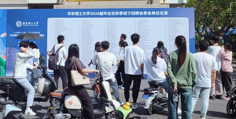 10月17日至20日,我校2024屆畢業(yè)生秋季線下招聘會(huì)在徐匯校區(qū)舉辦,近千家來(lái)自上海、江蘇、浙江、山東、重慶等地的用人單位來(lái)校招聘。中國(guó)石油化工集團(tuán)、中國(guó)建筑集團(tuán)、中國(guó)航空工業(yè)集團(tuán)、中國(guó)船舶重工業(yè)集團(tuán)、中交集團(tuán)、上海電氣集團(tuán)、申能集團(tuán)、上汽集團(tuán)、華誼集團(tuán)、國(guó)藥集團(tuán)等大型國(guó)企及下屬企業(yè)集中參會(huì),上海金山區(qū)人社局、松江區(qū)人社局、寶山區(qū)人才服務(wù)中心、漕河涇開(kāi)發(fā)區(qū)、上海張江高科技園區(qū)、金山第二工業(yè)園區(qū)、上海化學(xué)工業(yè)區(qū)、陸家嘴金融城、上海外高橋保稅區(qū)、蘇州陽(yáng)澄湖鎮(zhèn)、紹興諸暨市人社局、平湖研究院等地方、園區(qū)發(fā)揮集群優(yōu)勢(shì),紛紛組團(tuán)來(lái)校招聘?,F(xiàn)場(chǎng)提供近6000個(gè)工作崗位,招聘專(zhuān)業(yè)以化工、化學(xué)、材料、生物、藥學(xué)、機(jī)械、信息、文商等為主,囊括我校所有專(zhuān)業(yè)大類(lèi),吸引了眾多校內(nèi)應(yīng)屆畢業(yè)生。