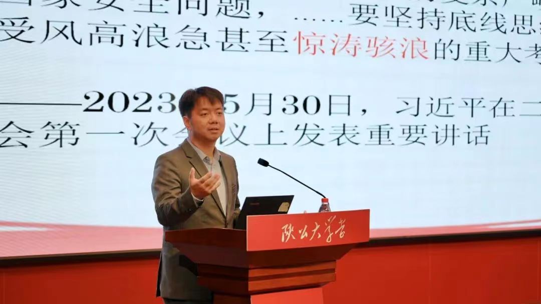 主題報(bào)告中,王文教授對(duì) “驚濤駭浪”一詞進(jìn)行了言簡(jiǎn)意賅的生動(dòng)解讀,聚焦國(guó)際熱點(diǎn),深入淺出地剖析了中國(guó)未來(lái)發(fā)展面臨的國(guó)內(nèi)外形勢(shì)。