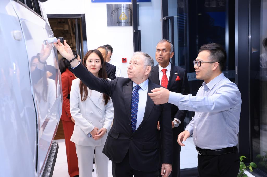 讓·托德一行參觀了同濟大學國際合作成果以及上海智慧交通安全駕駛工程中心(ssmrs)成果展,實地考察了ssmrs仿真實驗室、汽車運動與安全研究中心。同濟大學建筑設計研究院、交通運輸工程學院、上海智慧交通安全駕駛工程中心、外事辦公室相關負責人等參加了活動。