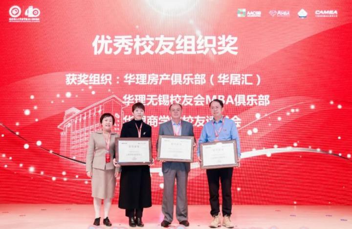 華東理工大學(xué)商學(xué)院原副院長黃廬進為無錫校友會mba俱樂部、商學(xué)院房產(chǎn)俱樂部(華居會)、商學(xué)院校友讀書會頒發(fā)優(yōu)秀校友組織獎。
