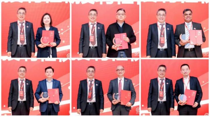 閻海峰為sgs通標(biāo)標(biāo)準(zhǔn)技術(shù)服務(wù)有限公司總裁郝金玉,上汽大眾汽車有限公司董事、總經(jīng)理賈健旭,江森自控亞太區(qū)總裁朗智文,上?,F(xiàn)代服務(wù)業(yè)聯(lián)合會常務(wù)副會長孫建平,霍尼韋爾中國投資有限公司董事長、霍尼韋爾中國區(qū)總裁余鋒、美年大健康產(chǎn)業(yè)集團股份有限公司董事長俞熔等6位企業(yè)嘉賓頒發(fā)客座教授聘書。