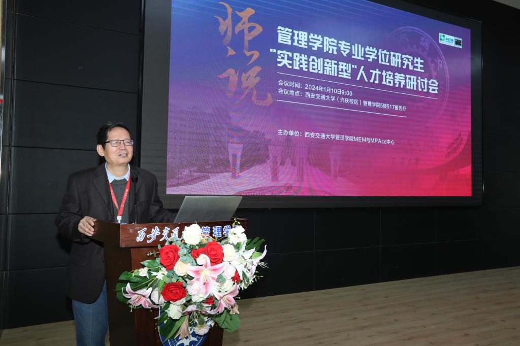 1月10日上午,管理學(xué)院舉辦“師說(shuō)”專(zhuān)業(yè)學(xué)位研究生“實(shí)踐創(chuàng)新型”人才培養(yǎng)研討會(huì),本次研討會(huì)由管理學(xué)院mem與mpacc中心主辦。研究生院學(xué)位辦主任陳永華,管理學(xué)院黨委書(shū)記馬曉彬博士,副院長(zhǎng)田軍教授,全國(guó)會(huì)計(jì)專(zhuān)業(yè)學(xué)位研究生教育指導(dǎo)委員會(huì)委員、會(huì)計(jì)與財(cái)務(wù)系主任汪方軍教授,全國(guó)工程管理專(zhuān)業(yè)學(xué)位研究生教育指導(dǎo)委員會(huì)委員、工業(yè)工程與運(yùn)營(yíng)管理系教授何正文,國(guó)際合作與交流處副處長(zhǎng)、工業(yè)工程與運(yùn)營(yíng)管理系教授孫新宇,全國(guó)會(huì)計(jì)專(zhuān)業(yè)學(xué)位研究生教育指導(dǎo)委員會(huì)顧問(wèn)委員、會(huì)計(jì)與財(cái)務(wù)系教授張俊瑞,信息系統(tǒng)與商務(wù)智能系主任廖貅武教授,管理科學(xué)系副主任房超副教授,工業(yè)工程與運(yùn)營(yíng)管理系肖忠東教授,會(huì)計(jì)與財(cái)務(wù)系司毅副教授、尹興強(qiáng)助理教授和來(lái)自協(xié)同育人培養(yǎng)基地中國(guó)西電集團(tuán)、慶安集團(tuán)有限公司、陜汽控股、西部電影集團(tuán)有限公司、中興新云、西部證券等十余家企業(yè)代表和大方集團(tuán)(西安)控股有限公司董事長(zhǎng)王方勝博士、華誠(chéng)博遠(yuǎn)工程技術(shù)集團(tuán)有限公司副總裁鄭軍先生、華陸工程科技有限責(zé)任公司總會(huì)計(jì)師殷敬忠正高級(jí)會(huì)計(jì)師、希格瑪會(huì)計(jì)師事務(wù)所合伙人李靜正高級(jí)會(huì)計(jì)師等為代表的十余位校外導(dǎo)師代表共計(jì)30余位參會(huì)嘉賓出席本次會(huì)議。