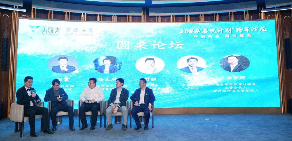 圓桌論壇以“科創(chuàng)浪潮下的同濟(jì)機(jī)遇”為主題,安永硬科技行業(yè)主管合伙人湯哲輝,武岳峰科創(chuàng)合伙人馮銳,同濟(jì)醫(yī)學(xué)院教授、上海微譜科技集團(tuán)創(chuàng)始人任天斌和上海同馭汽車科技有限公司創(chuàng)始人兼董事長(zhǎng)舒強(qiáng)參與討論,同濟(jì)科技園副總經(jīng)理張震擔(dān)任主持。