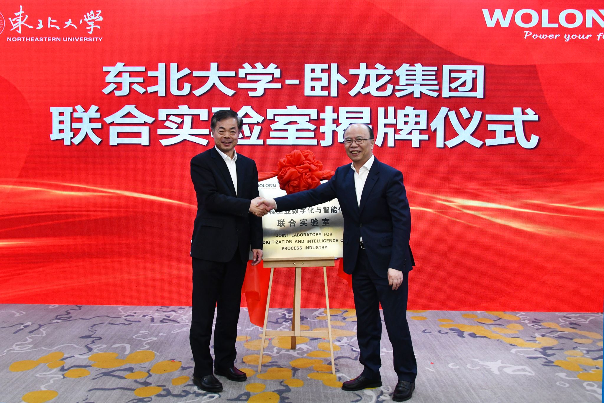 馮夏庭與陳建成共同為“東北大學與臥龍集團流程工業(yè)數(shù)字化與智能化聯(lián)合實驗室”揭牌。