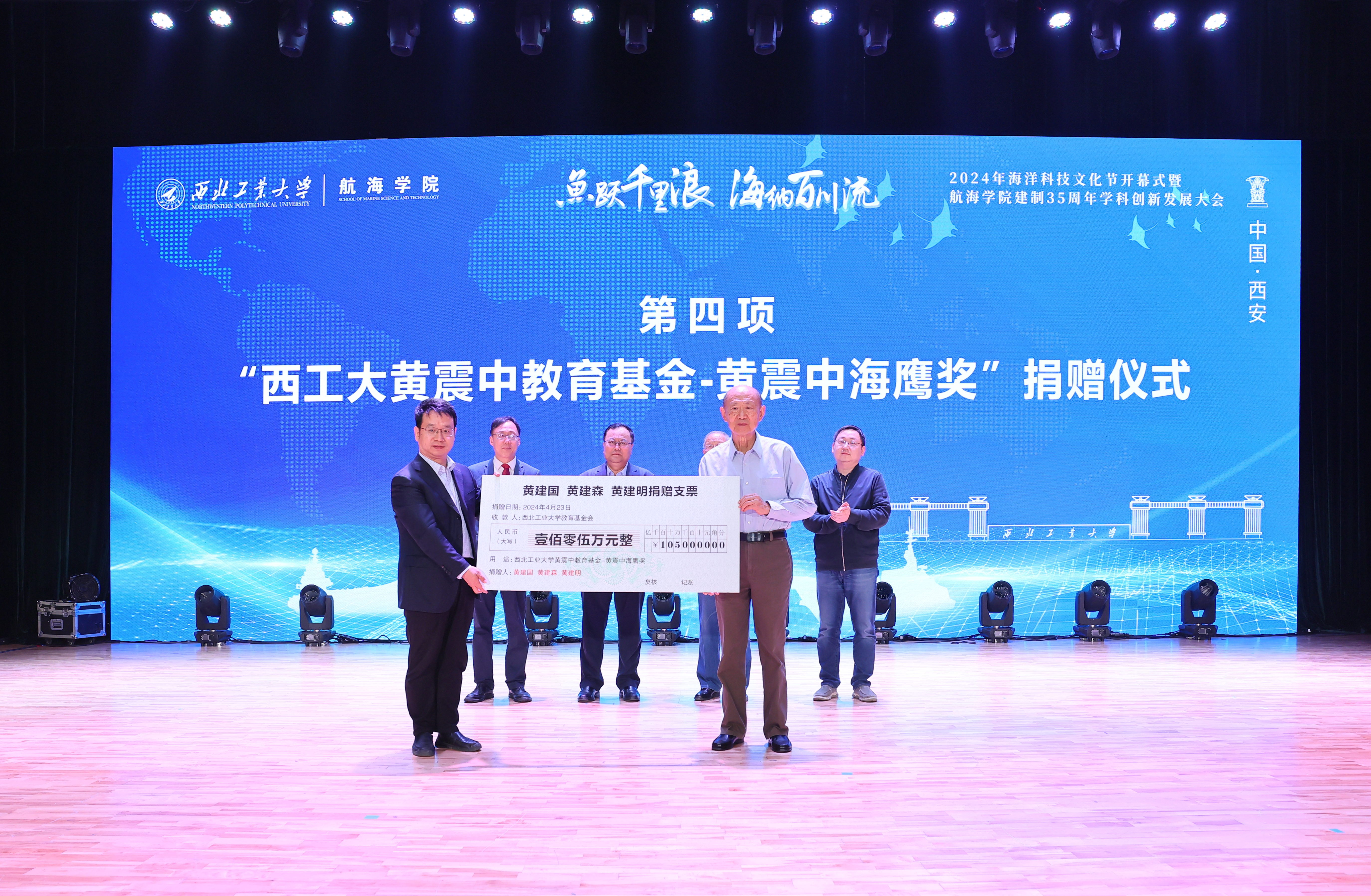 開幕式上舉行了“西北工業(yè)大學黃震中教育基金--黃震中海鷹獎”捐贈儀式。宋保維、潘光、學校對外聯(lián)絡(luò)辦公室主任楊銘接受捐贈。