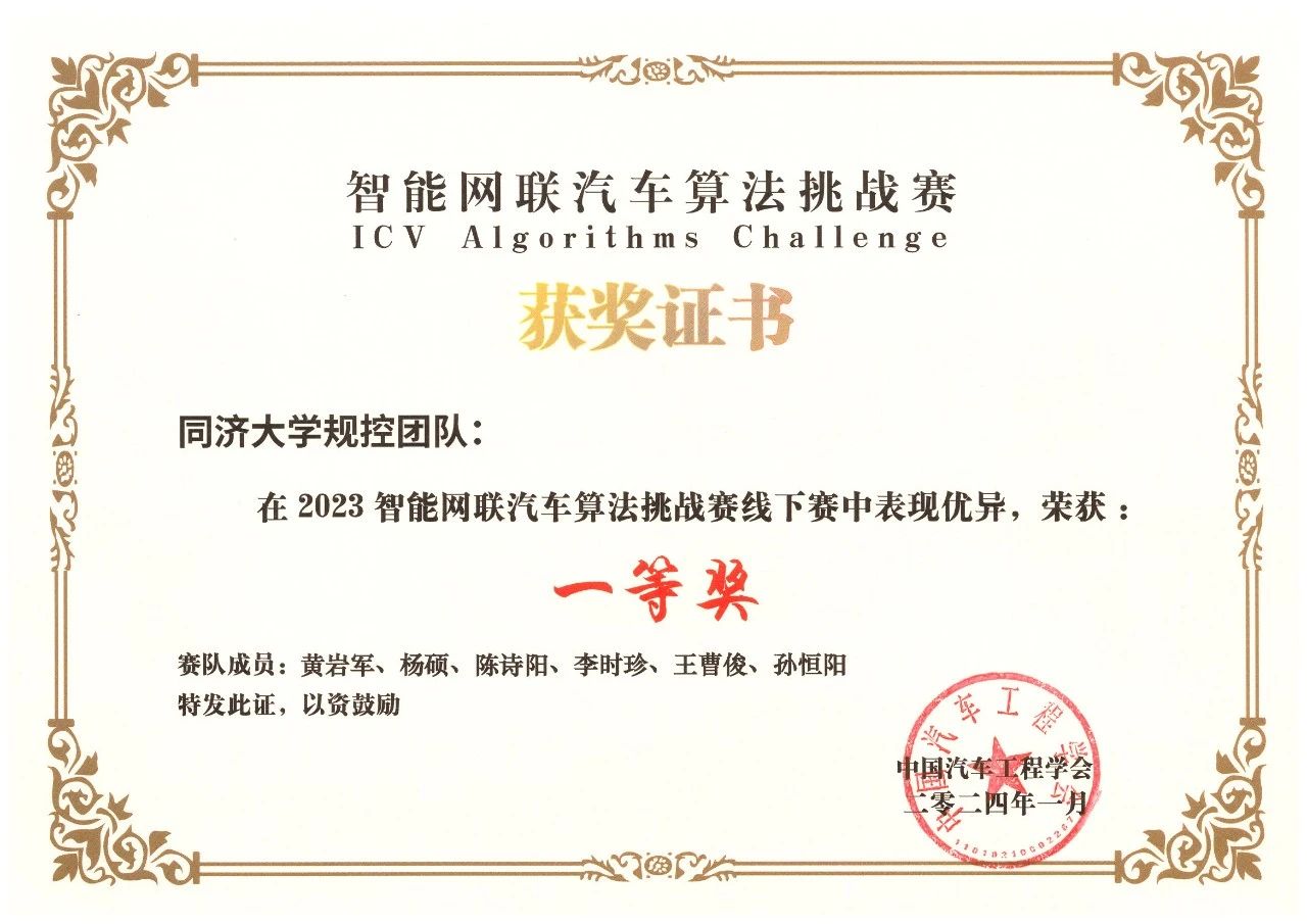 同濟(jì)大學(xué)黃巖軍團(tuán)隊(duì)獲中國(guó)智能網(wǎng)聯(lián)汽車算法挑戰(zhàn)賽唯一一等獎(jiǎng)