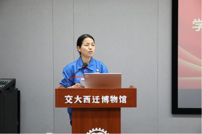 仲英書院輔導(dǎo)員袁麗倩以《西遷精神,永遠飄揚的旗幟》為題,結(jié)合習(xí)近平總書記來陜來??疾熘匾v話精神,生動講述了交大西遷的歷史故事,帶領(lǐng)大家重溫老一輩西遷人聽黨指揮跟黨走、扎根西部建功立業(yè)的崢嶸歲月和愛國奮斗的光輝歷史。