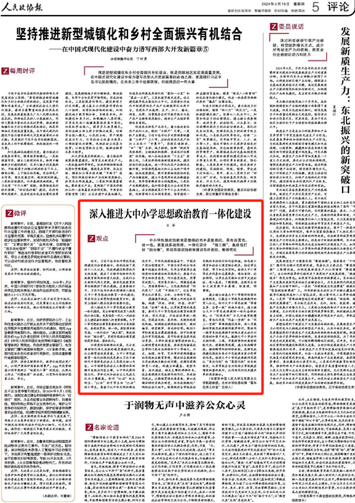 [人民政協(xié)報(bào)]蘭洋:深入推進(jìn)大中小學(xué)思想政治教育一體化建設(shè)