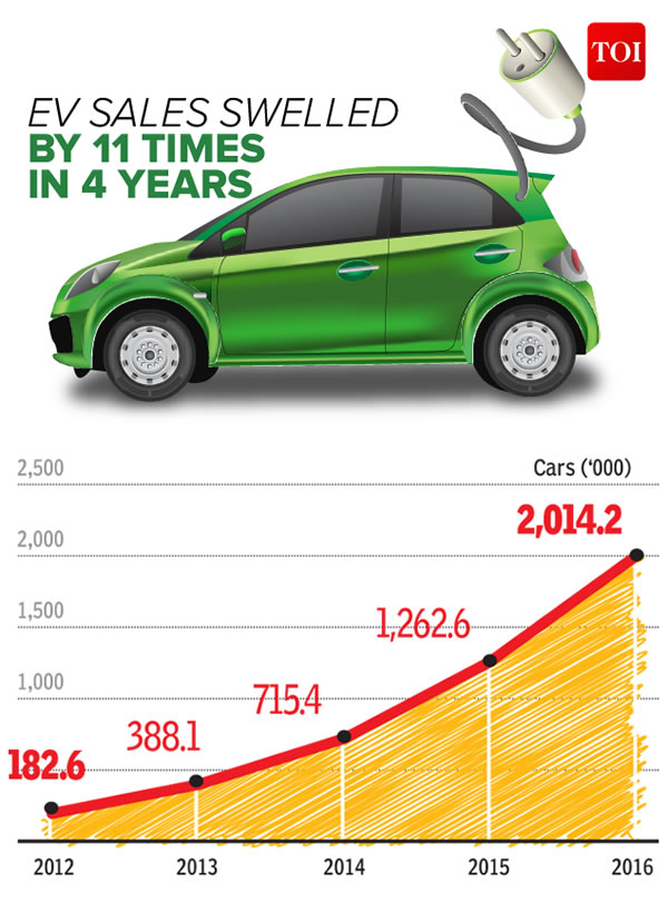 印度雖然是全球主要的汽車市場,但其2016年的電動(dòng)汽車銷量卻遠(yuǎn)遠(yuǎn)落后。2016年全球汽車銷量為201.42萬輛,相比于2012年的18.26萬輛,增長11倍。其中,印度電動(dòng)汽車銷量為4800輛,日本為15.13萬輛,美國為56.37萬輛,中國則為64.88萬輛。
