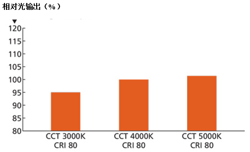 圖2 不同CCT在CRI Ra 80時的相對發(fā)光效率