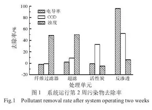 針對(duì)特種紙噸紙耗水量大、中水回用難度高的特點(diǎn),采用纖維過(guò)濾器-超濾-活性炭-反滲透工藝,出水水質(zhì)兼顧了電導(dǎo)率和COD的雙重要求,達(dá)到了系統(tǒng)設(shè)計(jì)的預(yù)期目標(biāo)。出水濁度≤0.5 NTU,電導(dǎo)率≤100μS/cm,總懸浮固形物未檢出,COD≤20mg/L,正常運(yùn)行費(fèi)用2.62元/立方米。出水質(zhì)量滿足特種紙生產(chǎn)的需要,中水回用率達(dá)到80%,紙機(jī)生產(chǎn)和紙制品質(zhì)量不受影響。