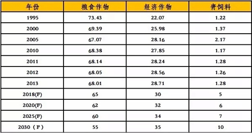 國內(nèi)農(nóng)業(yè)種植三元結(jié)構(gòu)變化趨勢(單位:%)