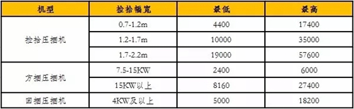 2017年國家農(nóng)機(jī)購置政策對打捆機(jī)補(bǔ)貼(單位:元)
