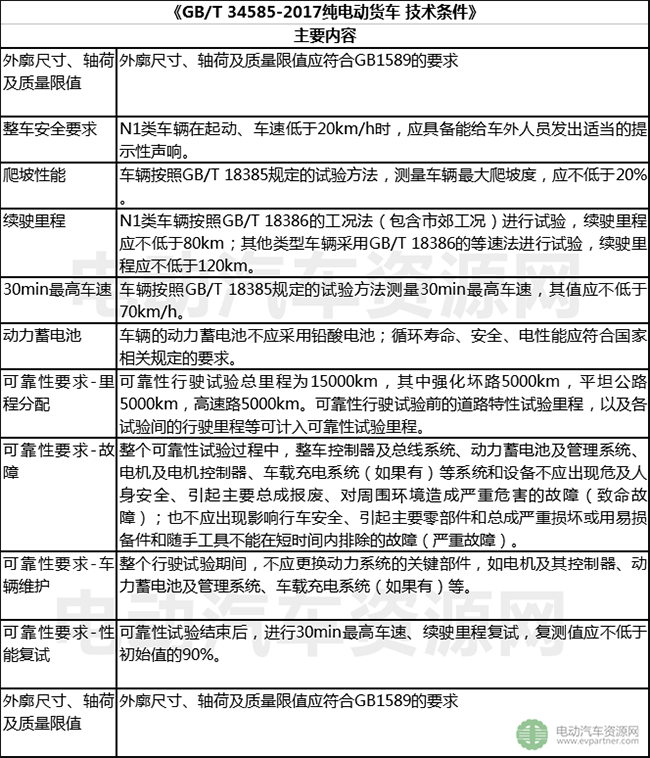 《GB/T 34585-2017純電動貨車技術條件》規(guī)定了純電動貨車的術語和定義、要求及試驗方法。該標準于2017年10月14日發(fā)布,2018年7月1日起實施。標準起草單位有:中汽中心、東風商用車、北京航空航天大學、北京新能源、重慶長安新能源、普天新能源、比亞迪。