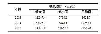 從圖1可知,氨水罐產(chǎn)生含氨廢氣的來(lái)源主要有三個(gè)方面:①預(yù)處理單元的除油器系統(tǒng)利用酸性水進(jìn)行反沖洗操作,導(dǎo)致酸性水進(jìn)入氨水罐,而酸性水中氨氮濃度近三年平均在7756.41——10262.1mg/L(表1);②氨精制單元進(jìn)行的結(jié)晶切液、吸附切液、氨氣壓縮機(jī)除油、分油包除油、液氨儲(chǔ)罐除油切雜操作,以及收集異常狀態(tài)下氨系統(tǒng)安全閥起跳排放的氨介質(zhì),導(dǎo)致大量含氨介質(zhì)進(jìn)入氨水罐;③在成品液氨外售充裝的過(guò)程中產(chǎn)生的氨氣泄放至氨水罐內(nèi)。綜合上述原因可以看出,氨水罐內(nèi)氨水極易飽和,從而導(dǎo)致大量含氨廢氣溢出,污染周邊大氣環(huán)境。嚴(yán)重時(shí)溢出含氨廢氣NH3濃度高達(dá)50mg/m3,威脅員工生命安全。