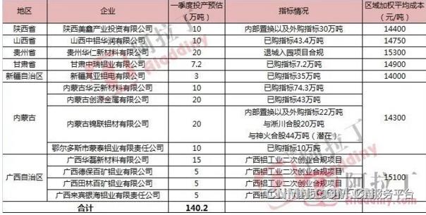 2018年一季度中國(guó)電解鋁投產(chǎn)預(yù)估