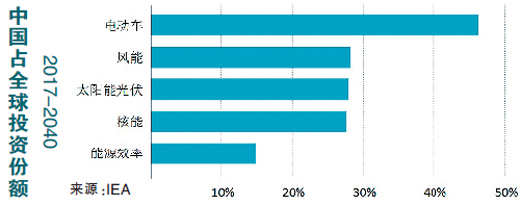 2016年,我國(guó)是全球最大的能源投資國(guó),占全球能源投資總額的21%。隨著對(duì)燃煤電廠投資的下降,我國(guó)境內(nèi)能源投資主要包括低碳電力、電網(wǎng)建設(shè)以及能效提升。預(yù)計(jì)截至2040年,中國(guó)將在能源領(lǐng)域投資共計(jì)64000億美元,電力行業(yè)尤其是低碳電力和電網(wǎng)建設(shè),將占投資總額的三分之二以上,能效投資也將總計(jì)超過20000億美元。