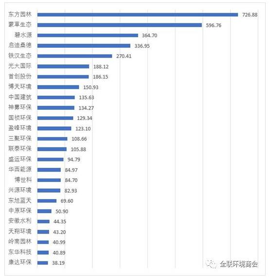環(huán)保企業(yè)中標(biāo)業(yè)績排行(單位:億元)