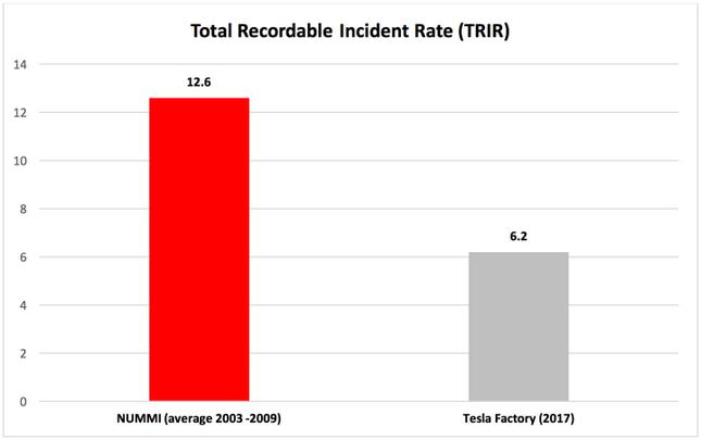 Shelby將特斯拉運營加州弗里蒙特工廠時的事故率與豐田及通用運營時(NUMMI)的事故率進行了比較,如下圖: