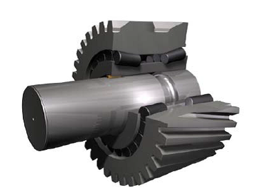 針對(duì)風(fēng)電機(jī)組空間限制導(dǎo)致行星齒輪結(jié)構(gòu)尺寸難以滿足剛性要求的現(xiàn)狀,國(guó)外提出行星齒輪與軸承外圈一體化的解決方案和鐵姆肯類似的集成式柔性銷方案(見圖1)。國(guó)內(nèi)杭齒和南高齒分別采用一體化結(jié)構(gòu)和集成柔性銷結(jié)構(gòu)試制了幾臺(tái)變速箱。由于行星齒輪要根據(jù)加工工序分別在變速箱廠和軸承廠完成機(jī)械加工、熱處理和產(chǎn)品檢測(cè),變速箱的成本大幅度提高。國(guó)內(nèi)風(fēng)電整機(jī)企業(yè)在目前的市場(chǎng)價(jià)格下,難以接受。而國(guó)外整機(jī)企業(yè)已經(jīng)批量采用此類結(jié)構(gòu)的變速箱。