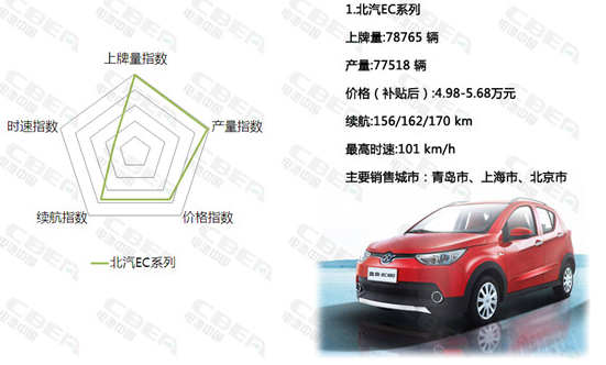 電池中國就2017年國內(nèi)新能源乘用車上牌量排名前10的車型進(jìn)行重點(diǎn)分析。(上牌量即指上保險(xiǎn)后的車輛數(shù)量,是真實(shí)銷量的可靠體現(xiàn)。)統(tǒng)計(jì)各車型的上牌量、產(chǎn)量、價(jià)格、續(xù)航和最高時(shí)速數(shù)據(jù),并將五種數(shù)據(jù)進(jìn)行定比例計(jì)算,得出五項(xiàng)指數(shù),配合各車型具體情況,制作雷達(dá)圖并按照上牌量排名,如下圖1-10所示。