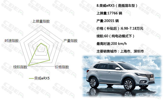 圖8:2017年上牌量排名第8的車型榮威eRX5各數(shù)據(jù)情況