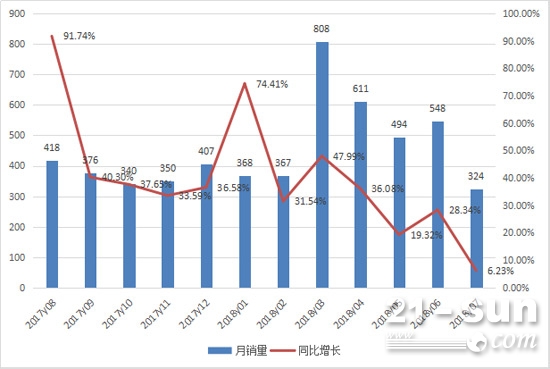 2017年8月至2018年7月平地機(jī)月度銷售情況