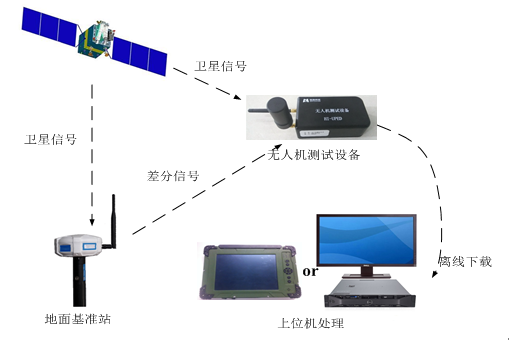 無人機飛行性能測試系統(tǒng)使用rtk(實時動態(tài)定位:real-time kinematic)技術,采用gps的載波相位觀測量,并利用了rtk基準站和無人機測試設備之間觀測誤差的空間相關性,通過差分的方式減小誤差,從而實現(xiàn)cm級的高精度定位。系統(tǒng)工作原理,如下圖所示: