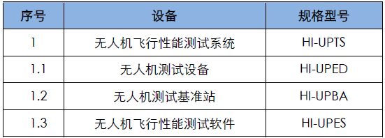 無人機飛行性能測試系統(tǒng)組成列表,如下: