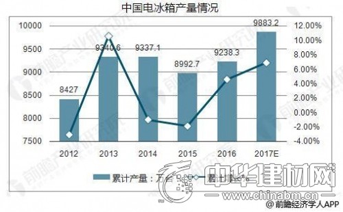 據(jù)前瞻產(chǎn)業(yè)研究院發(fā)布的《冰箱行業(yè)市場需求預(yù)測與投資戰(zhàn)略規(guī)劃分析報(bào)告》數(shù)據(jù)顯示,2016年中國電冰箱累計(jì)產(chǎn)量達(dá)到了9238.3萬臺,與2015年相比增長4.6%。