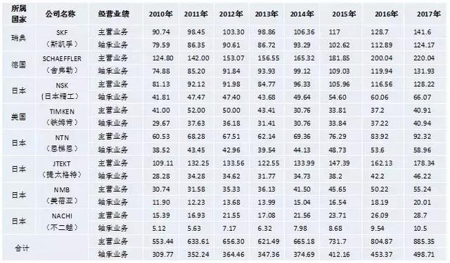▲世界八大軸承公司近年經(jīng)營(yíng)情況表(單位:億元)