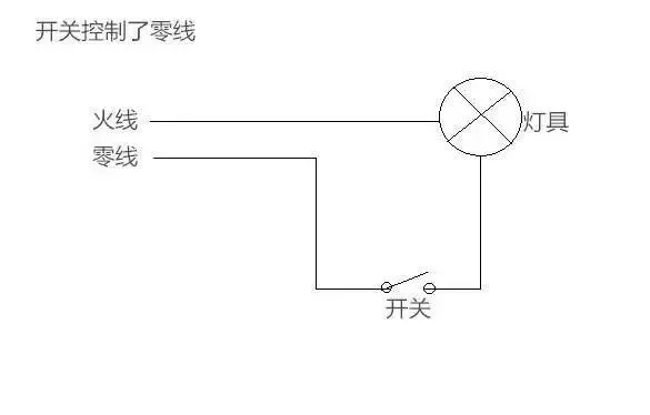 1:開(kāi)關(guān)控制了零線,火線直接進(jìn)燈具