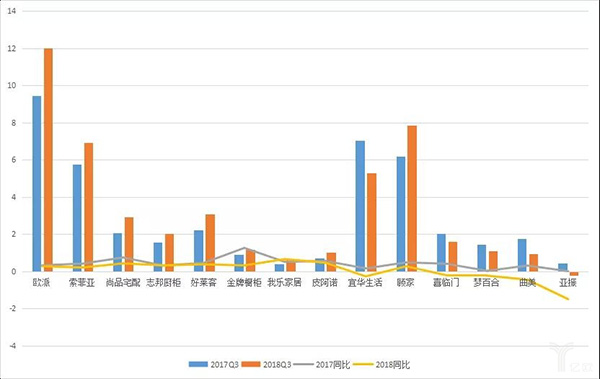 年年說寒冬,家具業(yè)似乎已經(jīng)對此麻木。但今年的數(shù)據(jù)確實不太好看。2018年上半年全國家具行業(yè)利潤總額223億元同比下降6.1%。再來對比上市企業(yè)今年三季報營收數(shù)據(jù),可以看出,多家企業(yè)營收上漲,但三季度增速較一二季度放緩,同時部分企業(yè)凈利潤出現(xiàn)負增長。多數(shù)企業(yè)增速不敵去年。